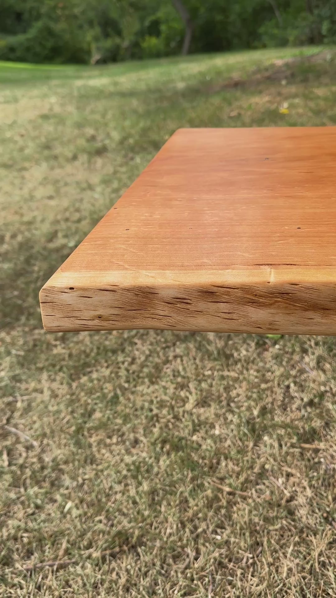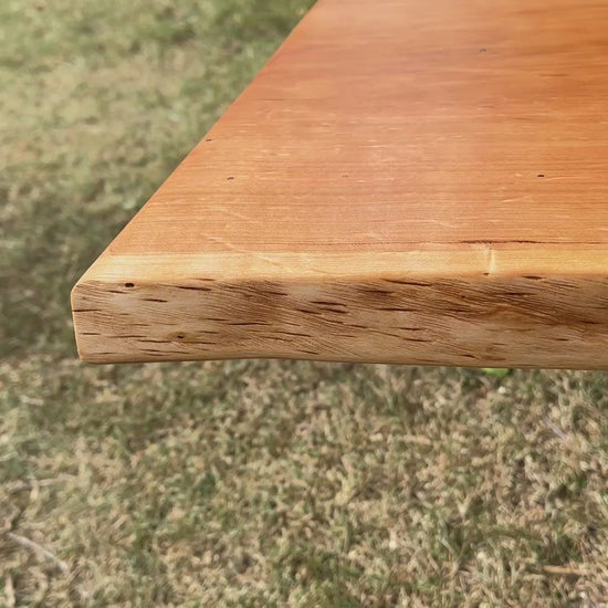 A cherry live-edge table or bench top is a piece of furniture crafted from a single slab of cherry wood, with the natural, untrimmed edge of the tree preserved.