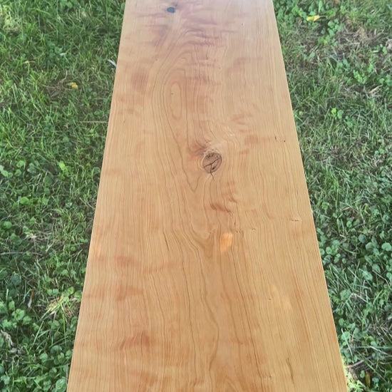 The surface of the benches smoothness, showcases the natural beauty of the cherry wood. Its rich, reddish-brown hue was highlighted by a simple oil finish, which brought out the subtle, swirling patterns of the grain and a lustrous sheen. Over time, this cherry would deepen in color, developing a beautiful, aged patina.